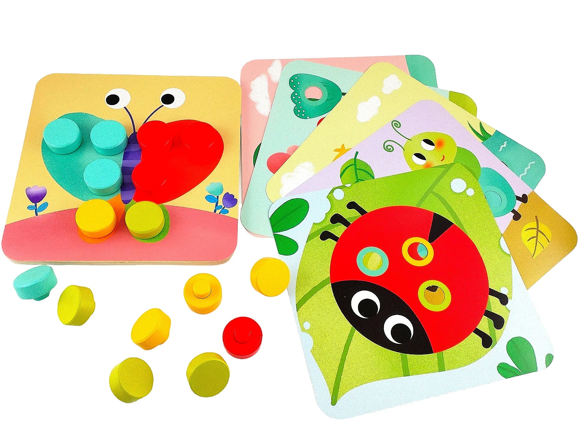 With multiple colourful pegs, complete the different images.